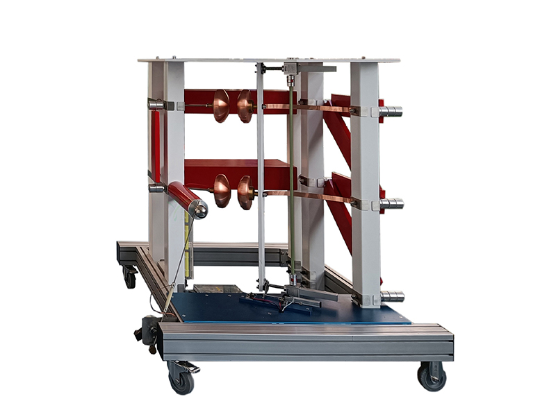 1.沖擊電壓發生器本體結構采用四柱H結構形式,由單只法蘭構成的鋼體支架平行外掛兩只電容器,構成一個穩定的結構組成